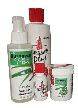 This product is the result of over 30 years of research and development. Unlike most over-the-counter remedies, Burnaway Plus does not contain petroleum grease, alcohol, or any other ingredients that may sting or aggravate burns. Instead, much like your body, it has a water base, which acts as a soothing coolant and carrier of Burnaways' natural components, including Aloe, Tea Tree Oil, Clove Oil, and Hawaiian Ginger.